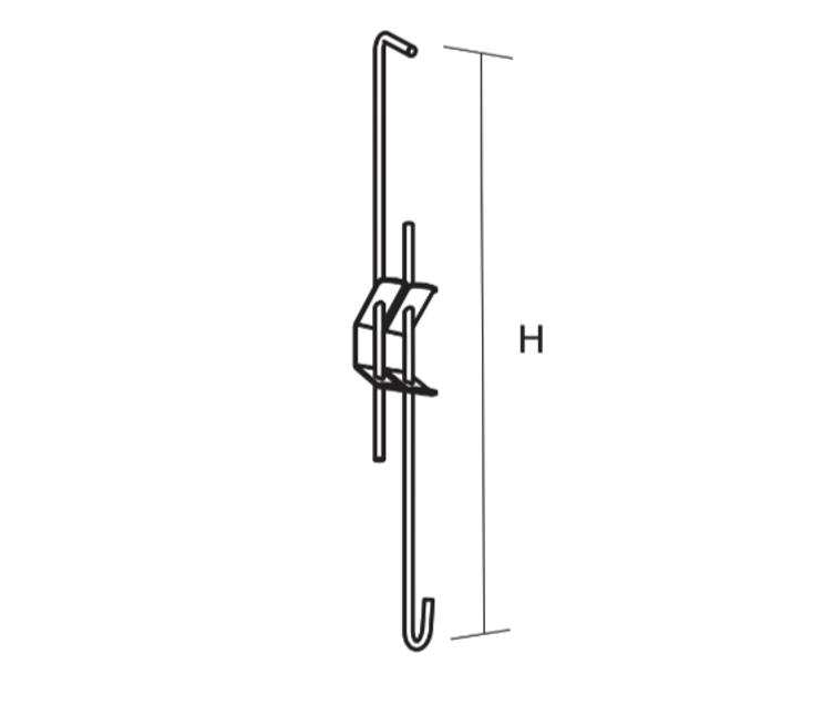 För nedpendling. Pendel av 4 mm galv stål med fjärdelås. En rundad och en vinklad krok. Tillåten belastning 233 N.